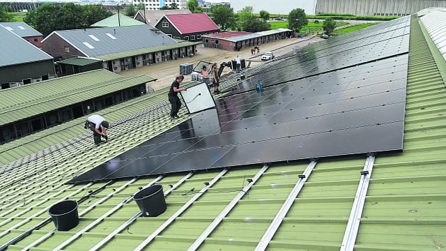 Aalsmeer – Deze week plaatste Janszon B.V. het 3024ste zonnepaneel op het dak van Stal Wennekers aan de Mr. Jac. Takkade. Hiermee voorziet het stallencomplex binnenkort maar liefst 170 huishoudens van groene stroom. Achter de schermen is paardensportcentrum Wennekers al een enige tijd bezig om een uniek groen project te realiseren. Met vier binnenrijbanen heeft Stal Wennekers veel dakoppervlakte, “Onze daken lagen al jarenlang alleen regen en wind tegen te houden. Met de plaatsing van de panelen hebben zij er een nuttige en duurzame functie bijgekregen”, aldus Niels Wennekers, eigenaar van Stal Wennekers.