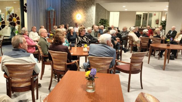 Aalsmeer – Op dinsdagavond 4 november heeft de 75+ club van de Vrienden van Zorggroep Aelsmeer een bedrijfsbezoek gebracht aan Zorgcentrum Aelsmeer. Er waren ongeveer zestig gasten aanwezig, allen betrokken bij ondernemingen in Aalsmeer en vaak via familie goed bekend met het Zorgcentrum. De nieuwe voorzitter van de Vrienden, Ben Schoenmaker, heeft de bijeenkomst geopend en zijn voorganger Berry Philippa bedankt voor zijn jarenlange inzet.