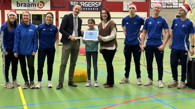 Aalsmeer – Op maandag 22 december hebben wethouder Bart Kabout en kinderburgemeester Marije de oorkonde Aalsmeer 10 jaar JOGG-gemeente in ontvangst genomen. Dit gebeurde tijdens de kerstvakantieactiviteit sport en spel van Team Sportservice in Sporthal de Bloemhof. Rianne de Ridder van JOGG NL reikte de oorkonde uit. Ook Karin de Groot en Annette Zwart van Zorg en Zekerheid waren hierbij aanwezig. De zorgverzekeraar is een belangrijke partner omdat zij de afgelopen 10 jaar de JOGG-beweging actief ondersteunen. Tijdens de instuif deelden zij springtouwen uit aan de aanwezige kinderen, waar meteen een warming-up mee werd gedaan.