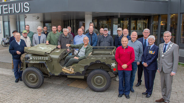De avond begon met een groepsfoto bij het oorlogsvoertuig van wijlen Gerrit Burggraaf, dat ook dit jaar weer door zijn familie werd opgesteld. “Gerrit zou trots zijn. En wij zijn dankbaar”, aldus de burgemeester.