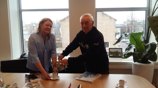 Afgelopen dinsdag is de inhoud van de koffiepot officieel overhandigd aan wethouder Alink en binnenkort gaat Gerard Zelen met de wethouder naar ESA om het geld te overhandigen aan directeur M. van Maastrigt.