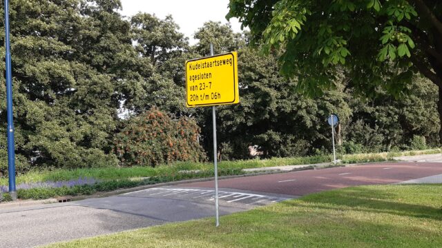 Met een bord werd de ‘klus’ aangekondigd en het is misschien niet iedereen, of na pas enkele malen lezen, opgevallen: Het bord miste een letter. De ‘f’ was vergeten, maar het kan natuurlijk ook een grap van de plakker geweest: ‘a(h), gesloten’, geen doorgang dus. Grappig…