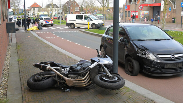 Op de foto: Kop-staartaanrijding tussen een motorrijder en een auto. Foto: aangeleverd.