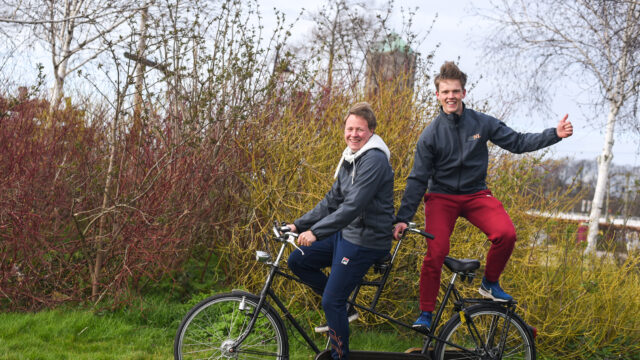Foto: Sebastiaan Sargis en Lars Groen op hun tandem. Foto: Alisa Visser