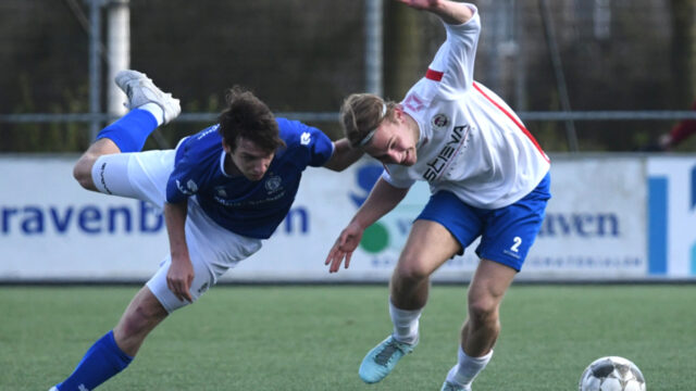 Atletische strijd om de bal. Foto: Hans van Gelderen.