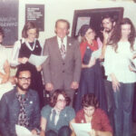 Uithoorn – Een vergeeld fotoboek uit 1975 toont een groep mensen voor een stand van…