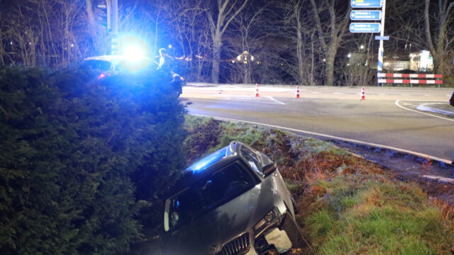 Aalsmeer – Een auto is zaterdag 22 januari rond zeven uur in de avond door nog onbekende oorzaak in de berm naast de Bachlaan beland. Het ongeval gebeurde net na de bocht vanaf de Legmeerdijk. De auto kwam tot stilstand tegen de haag rond de tuin van een woning.