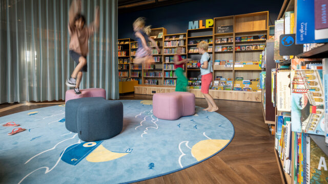 De Bibliotheek is ontworpen als huiskamer buitenshuis. Een plek waar je altijd naartoe kan. Caroline vertelt trots: “Vanaf dag één dat we open waren, hebben we voortdurend mensen over de vloer gehad. Van vroeg tot laat. De mensen blijven ook veel langer. En ze doen van alles. Er is plek om te lezen, werken, leren, kletsen, spelen, koffiedrinken, om een workshop te volgen. En zo kan ik nog wel even doorgaan. Dat was voorheen niet zo.”