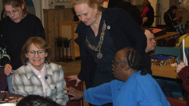De Ronde Venen – Burgemeester Rosan Kocken heeft dinsdag 3 februari een bezoek gebracht aan Soos De Cirkel tijdens een avond waar de Soosleden druk bezig waren met spelletjes, knutselen of een heel spelcircuit aflegden.