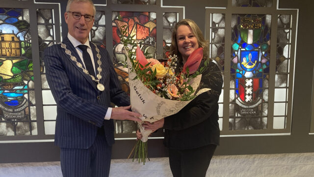 Burgemeester Pieter Heiliegers kreeg het boeket persoonlijk overhandigd door Inge Quint van Flower Art, een duurzaam gecertificeerde bloemist uit de gemeente. Hij reageerde enthousiast: “Ik ben trots dat we in Uithoorn en De Kwakel zo’n sterke bloemensector hebben. Onze ondernemers werken keihard en zetten grote stappen op het gebied van duurzaamheid. Zelf houd ik ontzettend van bloemen – om te krijgen én om te geven – als blijk van waardering. Als bloemengemeente blijven we dat ook doen.”