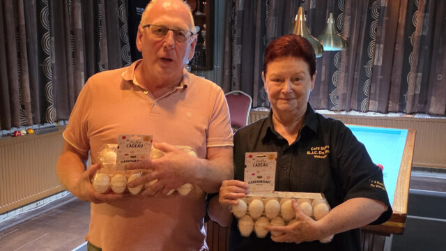 De Ronde Venen – Caty Jansen en Gijs v.d. Vliet zijn winnaar geworden van het paasprijsbiljarten van biljartclub De Merel/Thijmen van Veen Grond en Waterwerken 2026. Met overmacht waren zij de allerbeste in de voorronden om in de finale meedogenloos af te rekenen met Peer v.d. Meer en Walter van Kouwen, die kansloos tweede werden. De strijd om plaats drie werd gewonnen door Henny v/t Hul en Gerard Redegeld, die Dennis Kraak en Gerard Roling naar de vierde plaats stuurden.