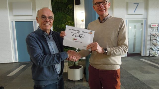 Er was een bedrag van 6.500 euro nodig voor dit project. Van voorzitter Nijland van de stichting Ontwikkelings Samenwerking Aalsmeer heeft Heart for Children een cheque van 1250 euro gekregen, zodat het benodigde bedrag is bereikt en het project tot uitvoer gebracht kan gaan worden.
