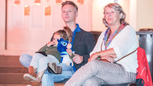 Foto: Burgemeester Gido Oude Kotte met dochter Sofia en moeder Elly in de feesttent (bij de seniorenmiddag).
