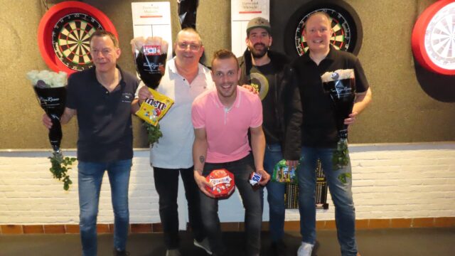 Kudelstaart – De twaalfde speelavond van de dartclub Poel’s Eye in de Proosdijhal in Kudelstaart werd bezocht door 40 deelnemers. De avond werd gewonnen door Remy van Groeningen, het was zijn eerste overwinning ooit. Vorig seizoen verloor hij nog de finale, maar nu won hij knap van Erik Jan Geelkerken. Erik Jan was evengoed aan een uitstekende reeks bezig, hij werd de winnaar van de vierde periode. Hoewel Erik Jan bijna een half seizoen miste is hij hard op weg naar een Top Tien notering aan het eind van het seizoen. De nummers één en twee van de stand wonnen ook een finale, maar dan van een lager niveau. Martin Bax won de finale van het tweede niveau, René Kruit van het derde niveau. Martin kon zodoende trainen in het winnen van finales, want op het hoogste niveau ging het dit seizoen meermaals mis. Doordat René bonuspunten pakte voor de hoogste uitgooi van de avond (130) bleef hij nog wel koploper in de stand. Gilbert van Eijk had een uitstekende avond, dankzij enkele knappe overwinningen bereikte hij de finale van het tweede niveau. Tjitte Miedema was de finalist van het derde niveau. Huib Gootjes won voor de tweede keer dit seizoen het vierde niveau, Ilona van Emden was de finalist.