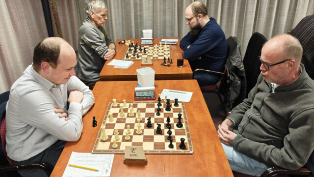 Op bord 1 trof Henk Kroon duidelijk en zoals ook gebruikelijk de sterkste speler (rating 1868) Hij probeerde Kroon dan ook te imponeren door maar met a3 te openen. Kroon liet zich hierdoor echter niet van zijn (schaak)stuk brengen en ondanks nog een pionoffer, waardoor zijn tegenstander een Wolga-achtige stelling op het bord kreeg hetgeen met de witte stukken nog moeilijker te bestrijken, bracht ook deze Denk en Zet speler het volle punt naar huis. Eindstand: een eclatante 5 ½ – ½.