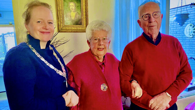 Zij waren dan ook blij met het bezoek van burgemeester Rosan Kocken, die hen persoonlijk geluk kwam wensen met dit prachtige diamanten huwelijksjubileum.