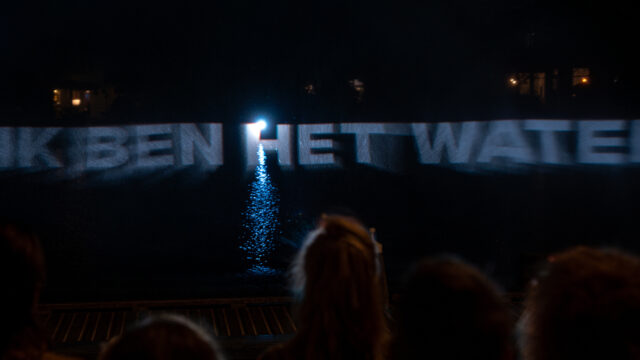 Dijkgedicht was week lang zichtbaar als lichtprojectie in nevel boven de Amstel