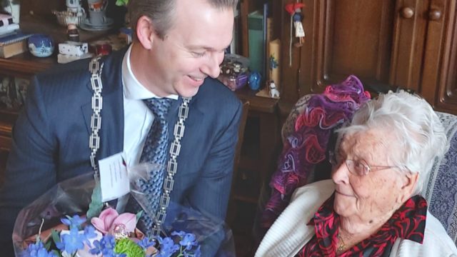 De volgende dag, dinsdag 21 januari, werd Mevrouw van de Coolwijk op een mooie bos bloemen en bonbons getrakteerd voor haar 100e verjaardag en komende vrijdag 24 januari gaat burgemeester Oude Kotte op bezoek bij mevrouw Joore-Weij om met haar te proosten op haar 100e levensjaar.