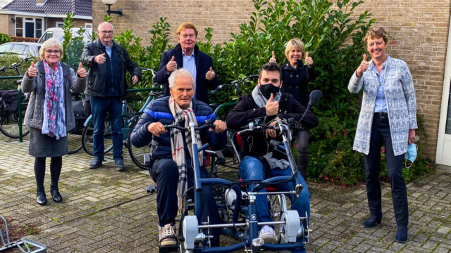Een vast programmaonderdeel is het maken van een wandeling. Een aantal cliënten heeft echter de wens geuit graag nog eens een fietstochtje te willen maken. De Vrienden van Zorgcentrum Aelsmeer staken de koppen bij elkaar en besloten aan die wens tegemoet te komen. De keuze viel op een zogenoemde duofiets met trapondersteuning.