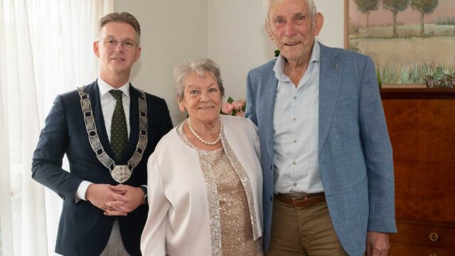 Foto: Burgemeester Gido Oude Kotte met Nelly en Cees Mul-Strooper (aangeleverd).