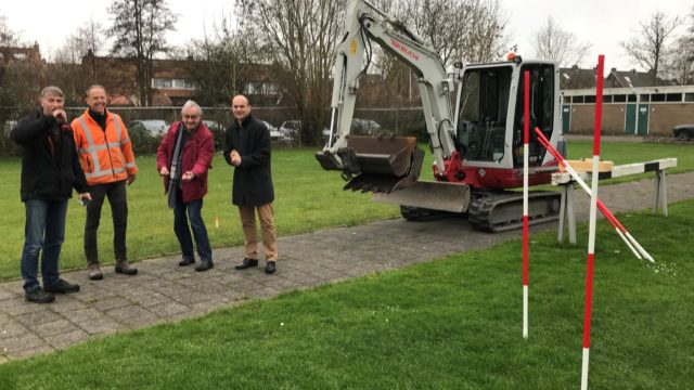 Onder toeziend oog van de bouwcommissie-leden Cor Hermanns, Fred van Andel en Laurens Poesiat begon Martin van Wieringen van Loonbedrijf van Wieringen & Zonen aan het afgraven van de grond en het verwijderen van struikgewas voor de fundering. De eerste paal zal spoedig volgen.