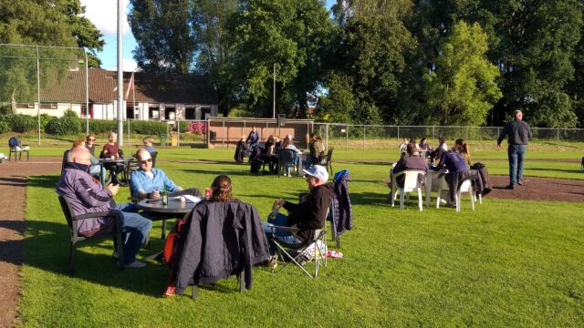 De Kwakel – Afgelopen zaterdag 11 juli stond de eerste Thamen Pub Quiz on the Field op het programma aan de Vuurlijn. Alle elf deelnemende teams konden plaatsnemen op het honkbalveld van Thamen, bij gelukkig mooi weer. Dit was het vervolg op de Pub Quizzen die de vereniging normaal organiseert in de wintermaanden in het clubgebouw en inmiddels, door corona, was er ook al een online variant geweest. Nu dus op het veld met maximaal 4 spelers per team zodat eenieder de 1,5 meter in acht kon nemen. De avond werd aan elkaar gepraat door Remco, speler van de eigen herensoftbal 2, en het was weer een waar succes. Tot het einde was het spannend. Winnaar van de avond was team ‘Forgot to warm-up’, die er met een speciaal cadeaupakket vandoor ging. Gedurende de hele avond was het clubgebouw open voor hapjes en drankjes die via whatsapp besteld konden worden en afgehaald konden worden na het krijgen van een berichtje.