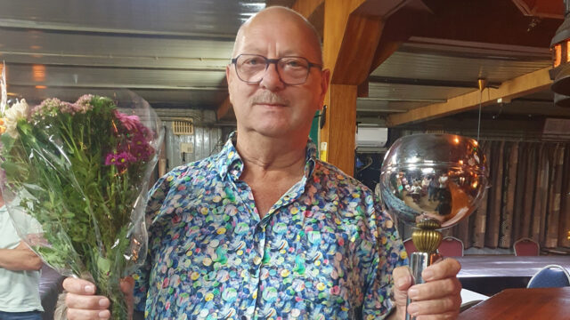 Vinkeveen – Egbert Verkerk mag zich een jaar lang de trotse winnaar noemen van het 36e Open Ronde Venen klaverjastoernooi. In Café Biljart De Merel aan de Demmerik – Arkenpark Mur 43 – liet hij afgelopen vrijdagavond zien dat hij de kaarten meesterlijk beheerst. Met een indrukwekkende score van 7445 punten bleef hij zijn concurrenten ruim voor en nam hij de wisselbeker mee naar huis. De strijd om de podiumplekken was spannend. Nathilda Gulbay, in uitstekende vorm, eindigde als tweede met 7008 punten, gevolgd door Carola van der Linden met 6964 punten. Maurits de Vries (6625 punten) en Greet Veraar (6578 punten) completeerden de top vijf. Opvallend: twee spelers boven de 7000 punten, een zeldzaamheid in het klaverjassen. De poedelprijs ging dit jaar naar William Mayenburg, de kampioen van vorig jaar, die dit keer genoegen moest nemen met 5177 punten. Er werden vier rondes gespeeld, waarbij elke pot zorgvuldig werd geteld. Naast de wisselbeker ontving Egbert ook bloemen en fraaie prijzen, beschikbaar gesteld door de organisatie van Café De Merel.