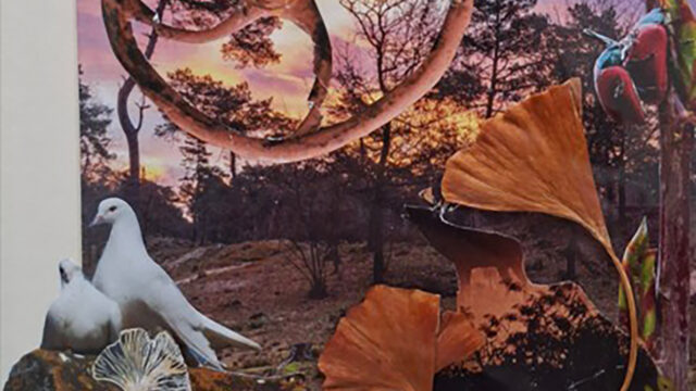 Naast beeldhouwwerk toont Hedy schilderijen waarin zij experimenteert met materialen zoals pastelkrijt, acrylverf, bijenwas en natuurlijke elementen, waaronder het Ginkgoblad. Haar liefde voor collages – ‘schilderen met papier’ – ontstond in 1998 en is na een korte pauze weer helemaal terug. Ook geeft zij workshops in deze techniek.