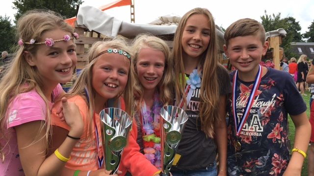 De Ronde Venen – Romee, Floun, Nynke, Melanie en Kjell van Flower Power, de prijswinnaars van zowel de 1e prijs als de originaliteitsprijs Bouwdorp De Ronde Venen willen heel graag alle vrijwilligers bedanken voor hun enorme inzet voor het Bouwdorp. Zonder deze vrijwilligers was het niet mogelijk Bouwdorp te organiseren. Zelfs in de stromende regen bleven ze de teams helpen met het bouwen van de hutten, het bedenken van leuke spellen en zorgen dat niemand honger of dorst had. Dank jullie wel en tot volgend jaar!