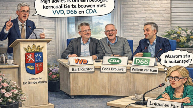 De Ronde Venen – De gemeenteraadsverkiezingen van 2026 in onze gemeente hebben geleid tot een versnipperd politiek landschap, waarin de VVD als grootste partij het voortouw heeft genomen in de verkenning van een nieuwe coalitie. Informateur Pieter Heiliegers kreeg de opdracht om te onderzoeken welke samenwerkingsvormen kansrijk zijn voor een stabiel bestuur. Zijn conclusie is helder: een kerncoalitie van VVD, D66 en CDA ligt het meest voor de hand, eventueel aangevuld met een vierde partij voor extra stabiliteit.