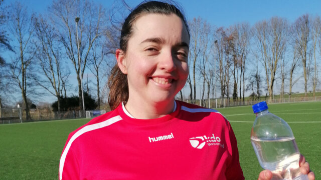 “Ik ben begonnen met voetballen toen ik zes jaar oud was. Mijn moeder heeft een voetbalteam speciaal voor G-sporters opgericht. Dat zijn mensen met een beperking. We zijn niet anders dan anderen. Ik heb alleen moeite met lezen en schrijven. Dat komt omdat ik een laag IQ heb. Voetballen vind ik leuk, net als puzzelen en spelen met lego. Ik speel linksachter. In een team met nog een meisje en verder allemaal mannen. In de kleedkamer wachten de mannen tot wij klaar zijn, daarna gaan ze zelf pas douchen. Van voetballen word ik heel gelukkig en vrolijk. Met iedereen kan ik goed opschieten.
