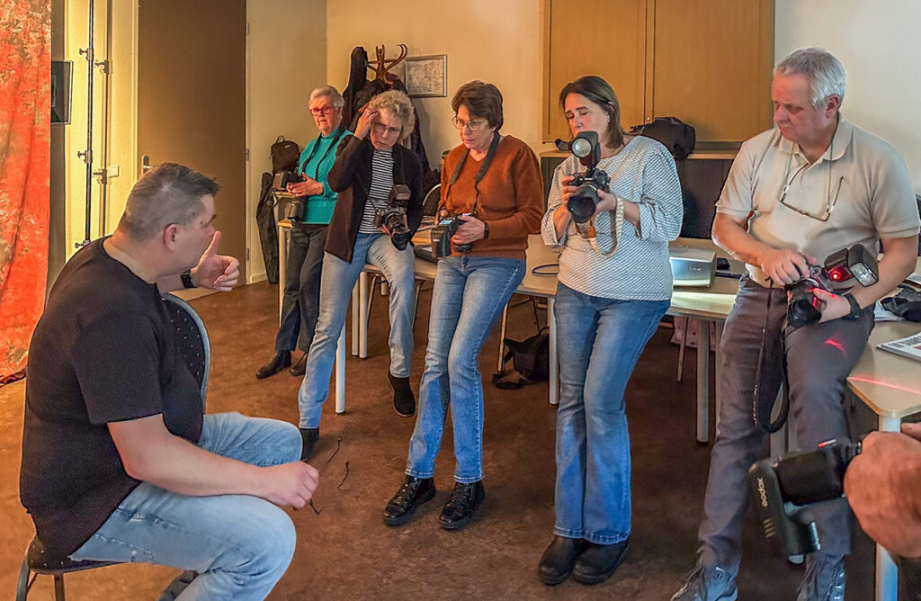 Op de foto (onder): Een aantal leden van de club had een workshop gevolgd fotograferen met flits. Foto: aangeleverd.