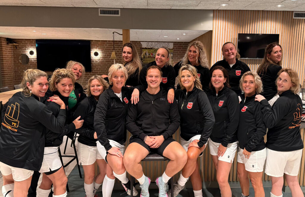 De Hoef – Het enthousiaste 30-plus vrouwenteam dat uit veertien leden bestaat, traint elke woensdagavond op het kunstgrasveld in De Hoef. In het voor- en najaar spelen zij in de vrijdagavond KNVB-competitie met vijf teams, waarbij zij hun voetbaltalenten laten zien in vier wedstrijden van 20 minuten. Uiteindelijk komt er dan een winnaar uit de bus na deze avonden. Het gezellige team uit de Hoef wint sowieso altijd de derde helft en doet meestal het licht uit van alle voetbalkantines. Afgelopen week is het team op de foto gegaan met hun sponsor van de clubtenues Qlimaatbeheersing uit Aalsmeer.