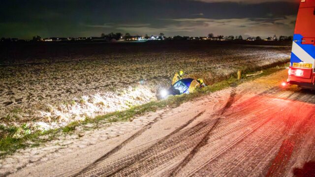 Rond tien over negen in de ochtend dinsdag werd opnieuw de hulp ingeroepen van de politie en de brandweer. Langs de N201 was een auto door de gladheid te water geraakt. De hulpdiensten zijn snel ter plaatse gegaan. In actie komen was niet echt nodig. De bestuurder bleek zelfstandig uit de auto te zijn geklommen. Het voertuig is later in de ochtend uit het water getrokken.