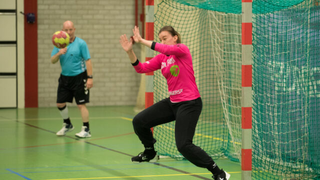 Een prima start, de meiden zitten direct lekker in de wedstrijd, heel anders dan vorige week waar het team direct achter de feiten aanliep. Het publiek krijgt veel beweging, stevige duels en mooie acties te zien. Halverwege de eerste helft loopt Aalsmeer tegen wat tijdstraffen aan. MHV’81 maakt daar gebruik van en zo is de stand opeens 7-9 in het voordeel van MHV’81. Na een goede redding van Ashley de Munck kan Lisa Hölscher tot twee maal toe aanleggen. Er wordt uiteindelijk gerust met een 12-11 voorsprong voor Aalsmeer na een late goal van Sonja van Wechem.