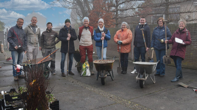 In de vroege ochtend, terwijl de mist nog boven het dorp hing, werd eerst gezamenlijk koffiegedronken. Vervolgens kwamen de scheppen, harken en kruiwagens tevoorschijn en met zichtbaar plezier werd er gewerkt aan het vergroenen van het dorpscentrum. Het resultaat mag er zijn: frisse, groene perken die zorgen voor meer sfeer én het hart van het dorp gezelliger en groener maakt.