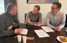 Foto: Wethouder Jan Hazen tussen Stéphane Cohnen (links) en Jaap Schippers van E-Harbour op de nieuw aangelegde steigers.