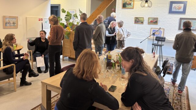 Foto: Gezellige drukte bij de opening van de tentoonstelling met tekeningen, aquarellen en schilderijen van Jannie Harting (foto aangeleverd).