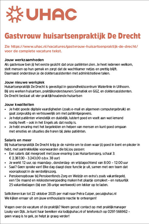 Vacature aangeboden op 16 oktober 2025. De Kwakel