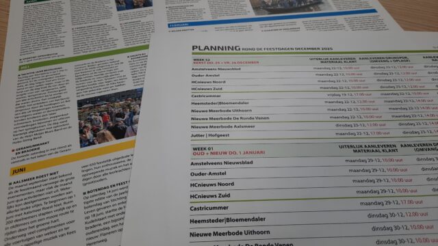 Voor de editie Aalsmeer mogen advertenties en verhalen zelfs later aangeleverd worden: tot woensdag 31 december 12.00 uur. Hou er wel rekening mee dat de krant pas in het nieuwe jaar, op vrijdag 2 januari, uitkomt en gelezen kan worden. Voor de editie Aalsmeer dus een vroege laatste krant van 2025 en een vroege eerste krant in 2026.