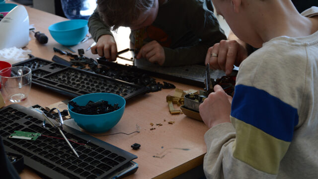 Kinderworkshop ‘Uit elkaar, in elkaar, maak van oude apparaten iets nieuws. Foto: aangeleverd.