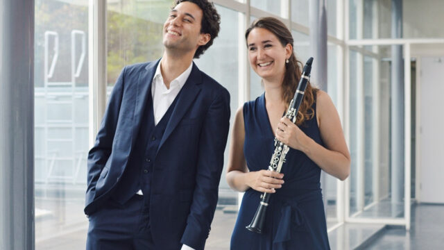 Camiel Boomsma – ‘de dichter’ op de piano – was al vaker in Uithoorn, maar wordt nu voor het eerst vergezeld door zijn levenspartner Marieke Vos op klarinet. Voor deze speciale gelegenheid heeft het muzikale duo een afwisselend programma samengesteld met klassiek-romantische werken: de Fantasiestücke van Schumann, de eerste klarinetsonate van Brahms en het klarinetconcert van Finzi.