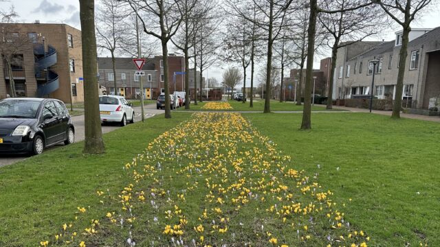 Kudelstaart – De kalender geeft nog lang geen voorjaar aan maar toch zorgen voorzichtig bloeiende bollen alvast voor een eerste stap naar de lente. Zoals hier bij de Romeijnstraat in Kudelstaart-Zuid, waar elk jaar een ‘krokuspad’ zich uitstrekt over het plantsoen. Natuurlijk geen ‘pad’ om op te lopen, maar om van te genieten. Dat het maar gauw lente mag worden!