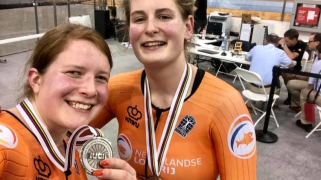 Kudelstaart – Tweeënhalve maand na hun onfortuinlijke val in de Zesdaagse van Gent, hebben Larissa Klaassen en Imke Brommer een succesvolle rentree gemaakt. Tijdens de wereldkampioenschappen paracycling, die afgelopen dagen in het Canadese Milton werden gehouden, won het duo een gouden en een zilveren medaille.