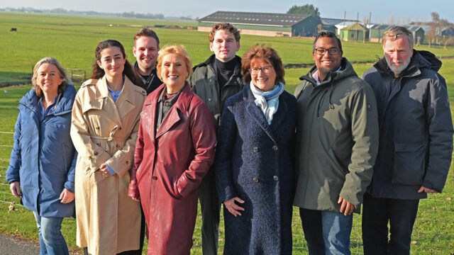 Op de foto: V.l.n.r. Petra Verboom, Maria Avakyan, Niels van Nobelen, Simone Borgstede, Youp de Haas, Ria de Korte, Jeffrey Schoenmakers en Gerard de Korte. Foto: aangeleverd.
