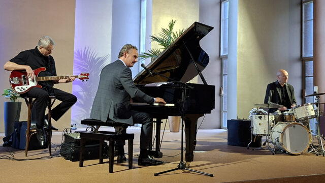 Uithoorn – Het multifunctionele kerkgebouw De Schutse in Uithoorn is wel wat gewend, maar afgelopen zondagmiddag 16 november sloeg alles: de swing en de groove van het Martijn Schok Trio zorgden ervoor, dat het publiek uit zijn dak ging. Niemand kon stil blijven zitten bij de voortreffelijk gespeelde piano-blues en boogiewoogie. De ritmesectie – Maarten Kruijswijk op drums en Hans Ruigrok op basgitaar – verschafte pianist Martijn Schok een rotsvast ritme, waarop hij virtuoos en vrij kon spelen en improviseren.