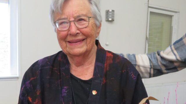 Aalsmeer – Tijdens de jaarvergadering van het Nivon afgelopen zaterdag 14 maart kreeg Minke de Vries het unieke speldje uitgereikt van 75 jaar lidmaatschap van de afdeling Aalsmeer. Als 20-jarige werd zij in 1951 lid van het Nivon om te gaan volksdansen. En dansen doet Minke met haar 95 jaar nog steeds. “Het houdt je jong en is goed voor de beweging”, aldus Minke.