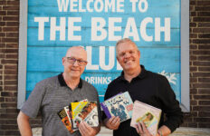 Foto: Tim Oudenaller geflankeerd door bestuursleden Bert Vreeken, Thomas Zwart en Rob Das van Qui Vive.