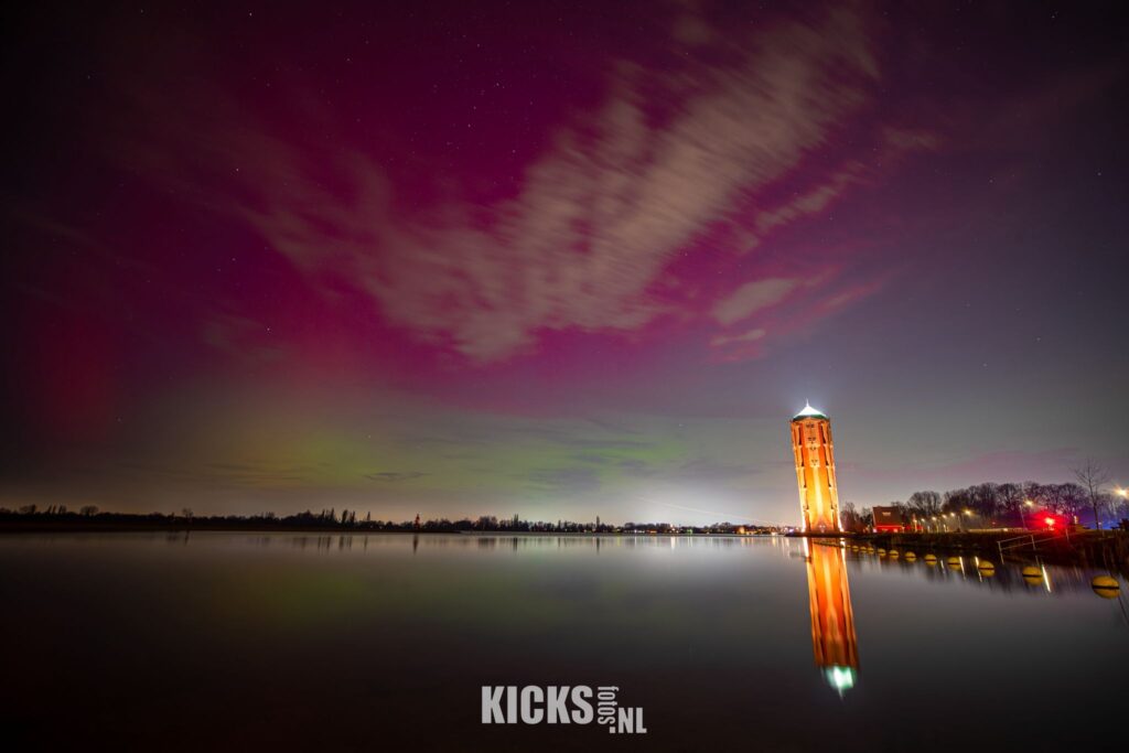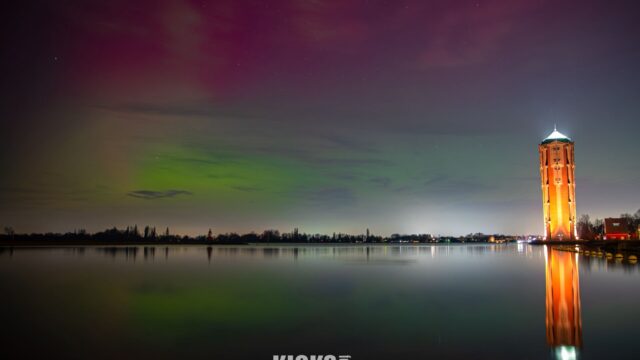 En wie het noorderlicht gemist heeft: Misschien vanavond, woensdag 21 januari, en mogelijk ook op donderdag 22 januari, kleurt de lucht weer groen en roze. Er is een reële kans volgens de Sterrenwacht. En zo niet, dan zijn er nog de foto’s van de Meerbode-fotograaf Kick Spaargaren die na de melding maandagavond naar de watertoren aan de Westeinderplassen snelde om het noorderlicht voor eeuwig vast te leggen!