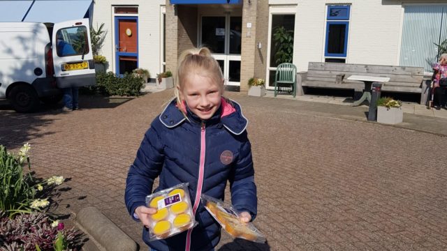 Er waren al meer dan 200 gele paaskoeken gekocht om de leerlingen van De Brug te trakteren op een lekkernij tijdens de paasviering. Zoals iedereen weet, zijn de scholen nu zeker nog tot en met de meivakantie dicht door het coronavirus. Dus toen had de school ineens heel veel koeken over. De oudervereniging heeft bedacht dat Zorgcentrum Aelsmeer een mooie bestemming was om alle koeken aan te doneren.